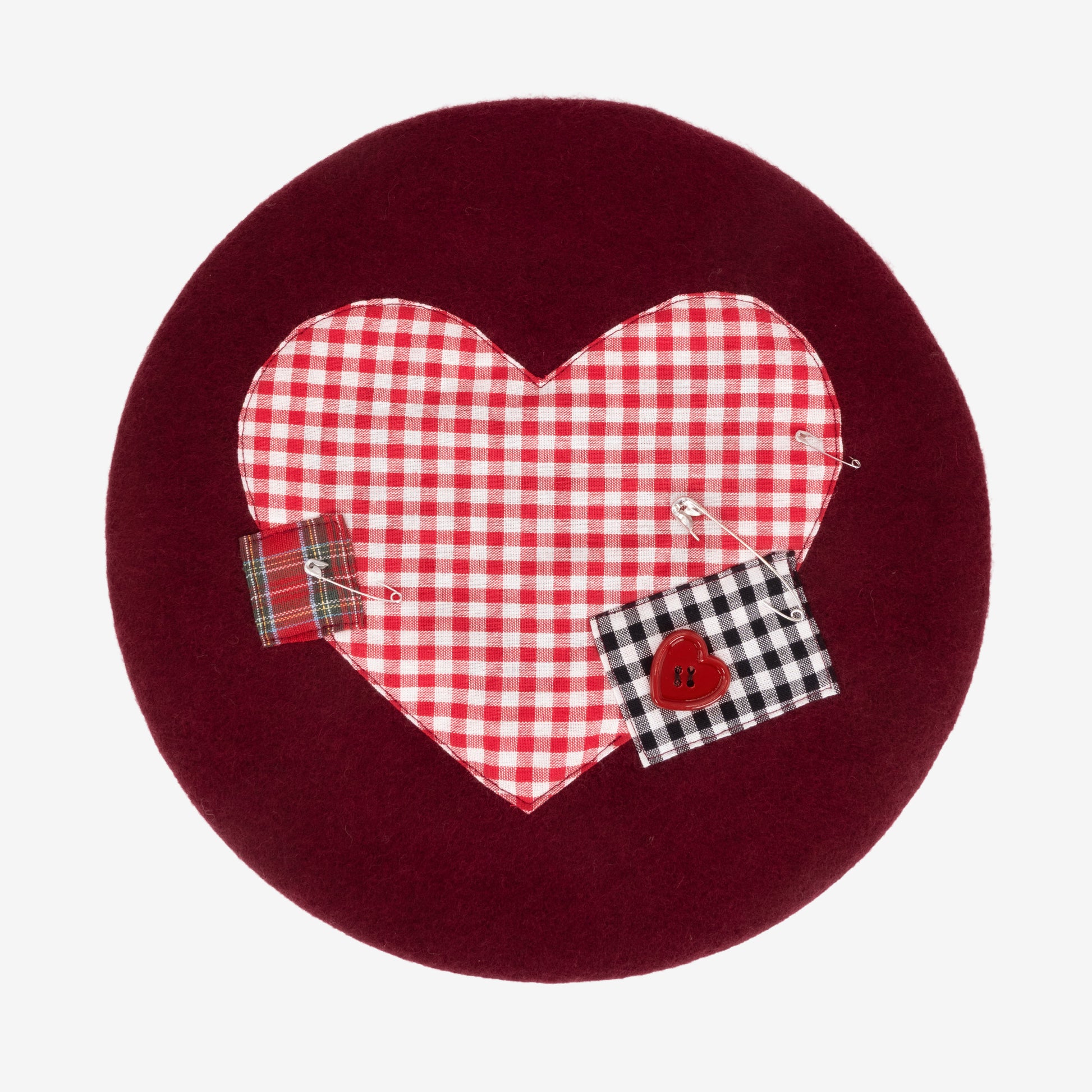 Un béret rouge profond à l’énergie vive et au style affirmé. Le Béret Anya joue avec les contrastes et les textures : cœur vichy, petits patchs en tartan et noir & blanc, boutons colorés, le tout rehaussé par des épingles qui évoquent une touche punk. C’est une pièce expressive, à mi-chemin entre tendresse et rébellion, pour celles et ceux qui aiment affirmer leur style avec un brin d’impertinence.