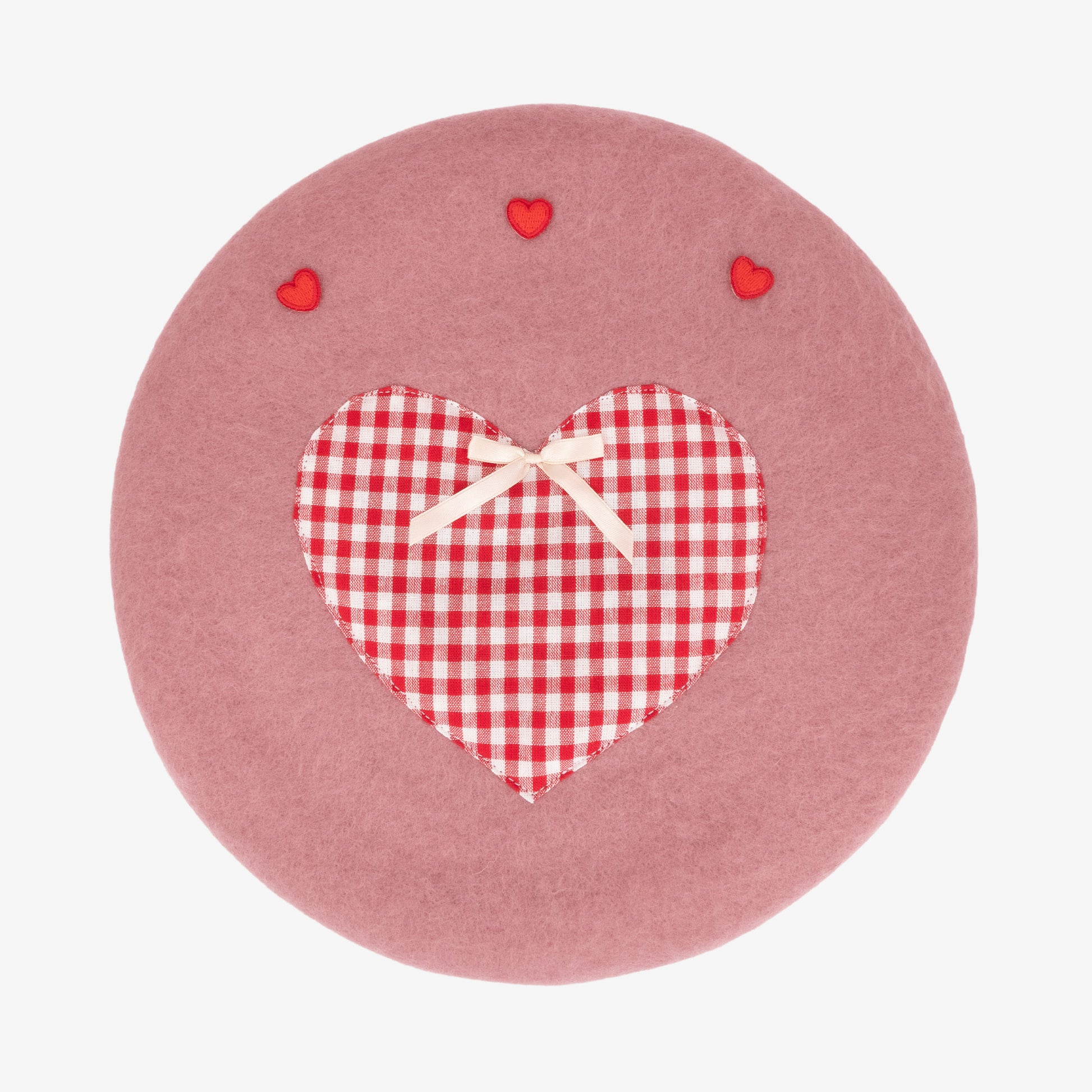 Un béret tout doux pour les amoureux du style girly rétro. Sa base vieux rose s’accorde parfaitement avec un cœur en vichy rouge, rehaussé d’un petit nœud crème. Romantique et plein de tendresse, il apportera une touche de mignonnerie assumée à toutes tes tenues.