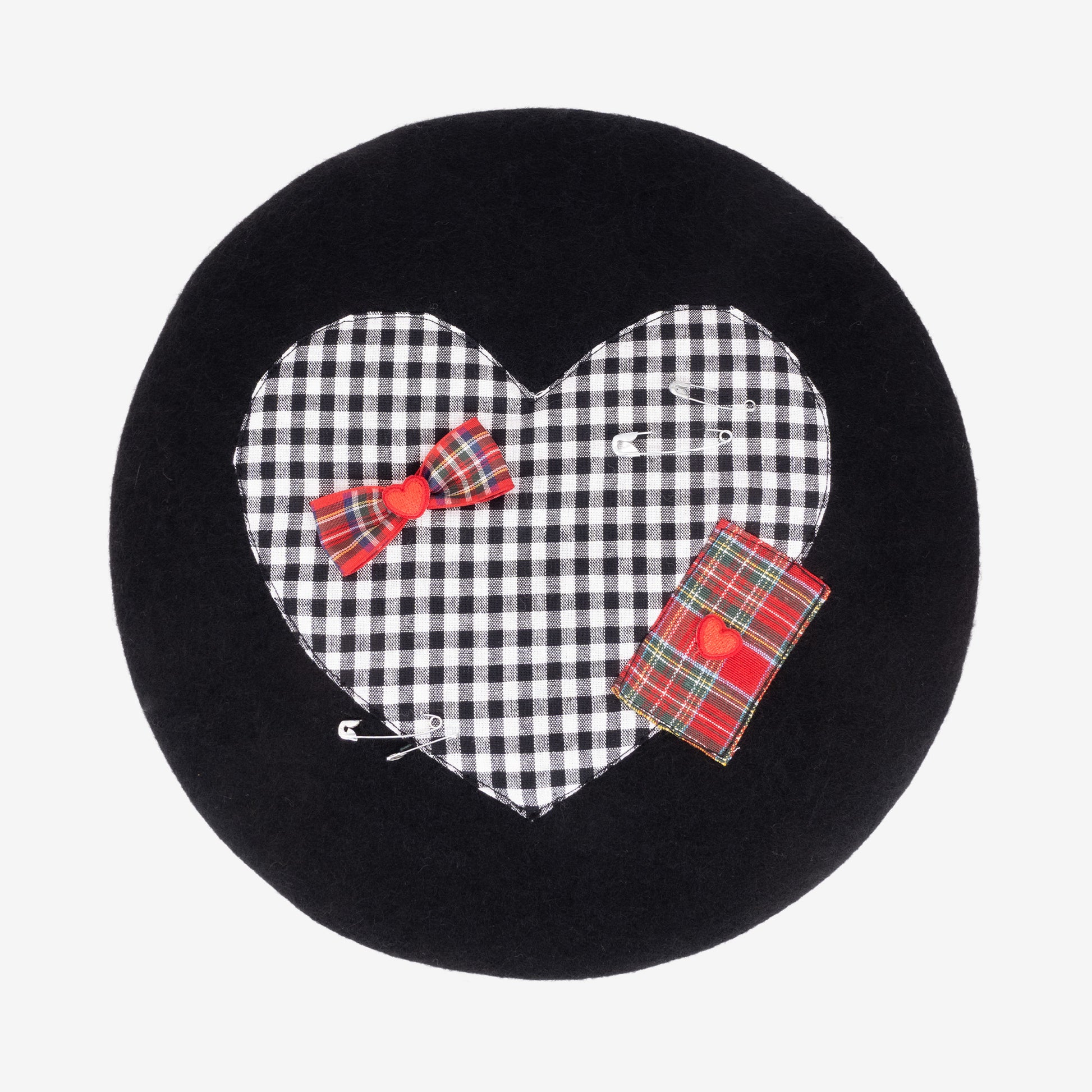 Un clin d’œil tendre au style punk japonais, entre douceur et caractère. Le béret Kanae marie les imprimés vichy et tartan dans un grand cœur cousu à la main, orné de petits détails qui font toute la différence : nœud, badge, épingles et finitions argentées. Un accessoire au charme rebelle, parfait pour affirmer ton style avec une touche kawaii qui sort de l’ordinaire.