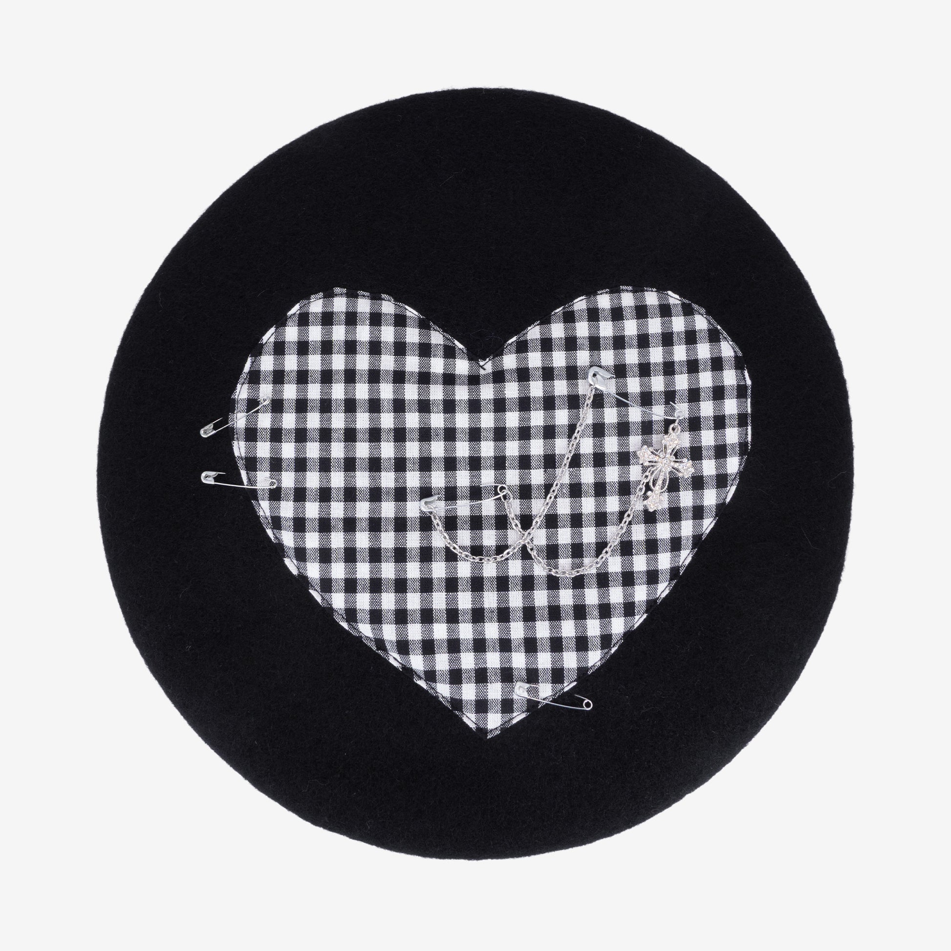 L’expression ultime d’un style rebelle et romantique. Le Béret Royal Riot noir incarne l’attitude d’un cœur libre : son cœur en vichy contraste avec la base noire, tandis que chaînes et épingles apportent une touche underground maîtrisée. Un essentiel pour toutes les âmes fortes qui veulent conjuguer douceur et révolte avec élégance.