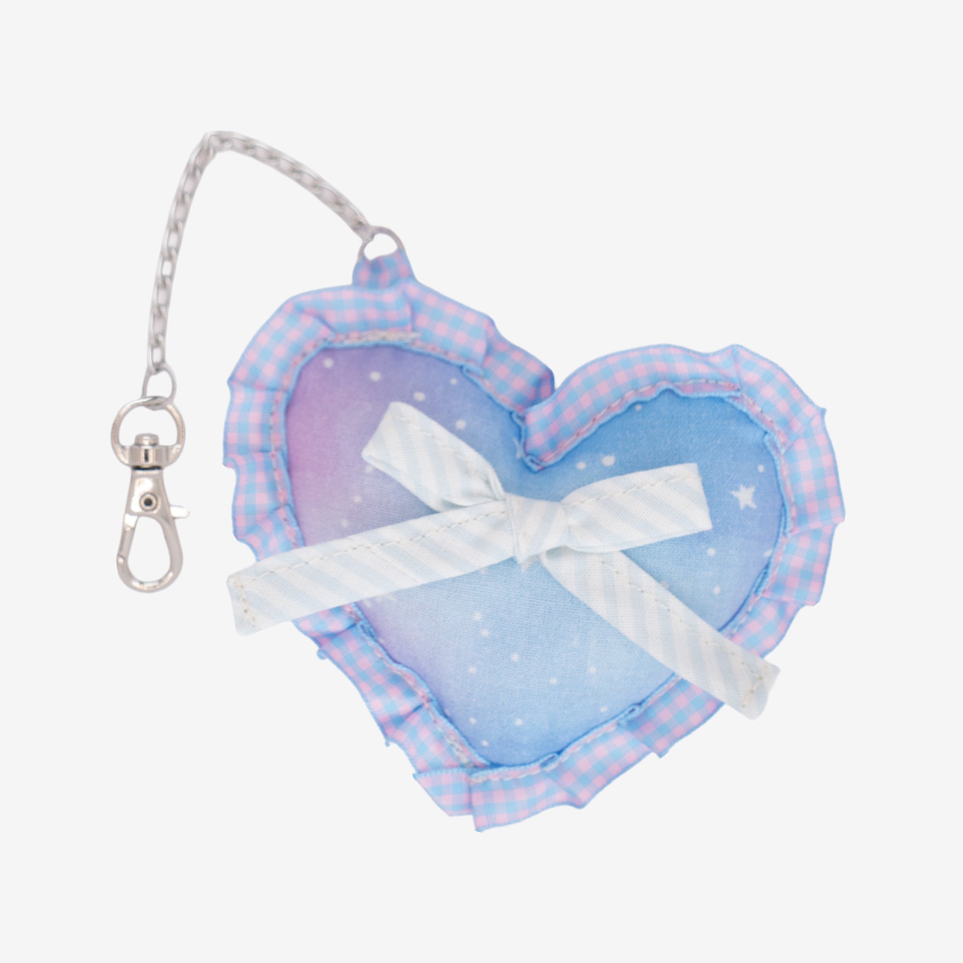 Contenu du bundle : • 1 béret bleu ciel avec appliqué cœur galactique • 1 petit nœud lavande aux détails floraux et breloque bleue • 1 bijou de sac en forme de cœur (motif galaxie et ruban) • 1 bracelet perlé avec breloque bleue • 1 porte-carte en tissu vintage rose poudré