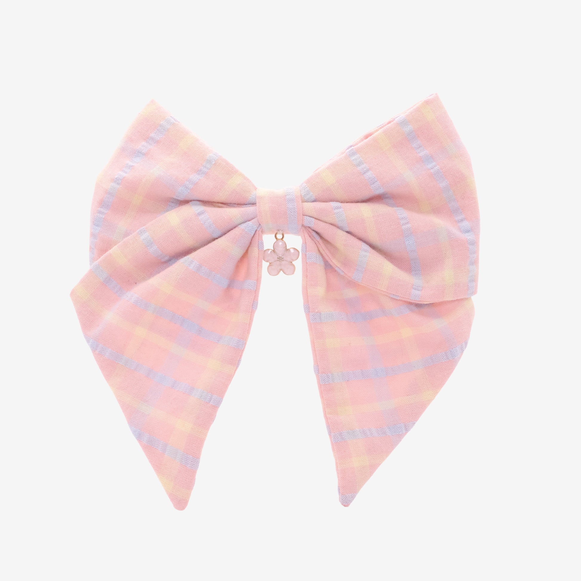 Un souffle de tendresse dans ta coiffure ! Ce nœud pastel à carreaux rose, bleu et jaune évoque la douceur d’un goûter printanier. Sa breloque fleur nacrée ajoute une touche romantique et délicate, parfaite pour les esprits rêveurs.