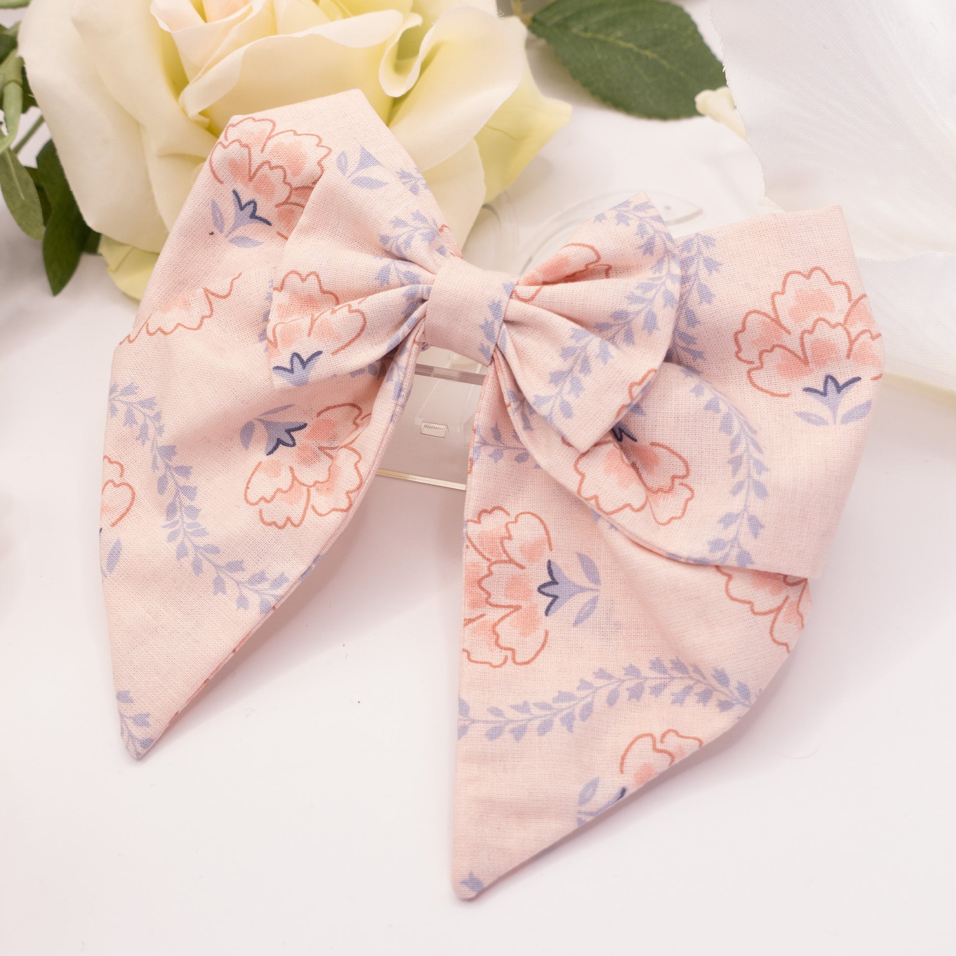 Caractéristiques : tissu en coton · ≈ 15 cm (largeur) · ≈ 15 cm (hauteur) · barrette clip au dos