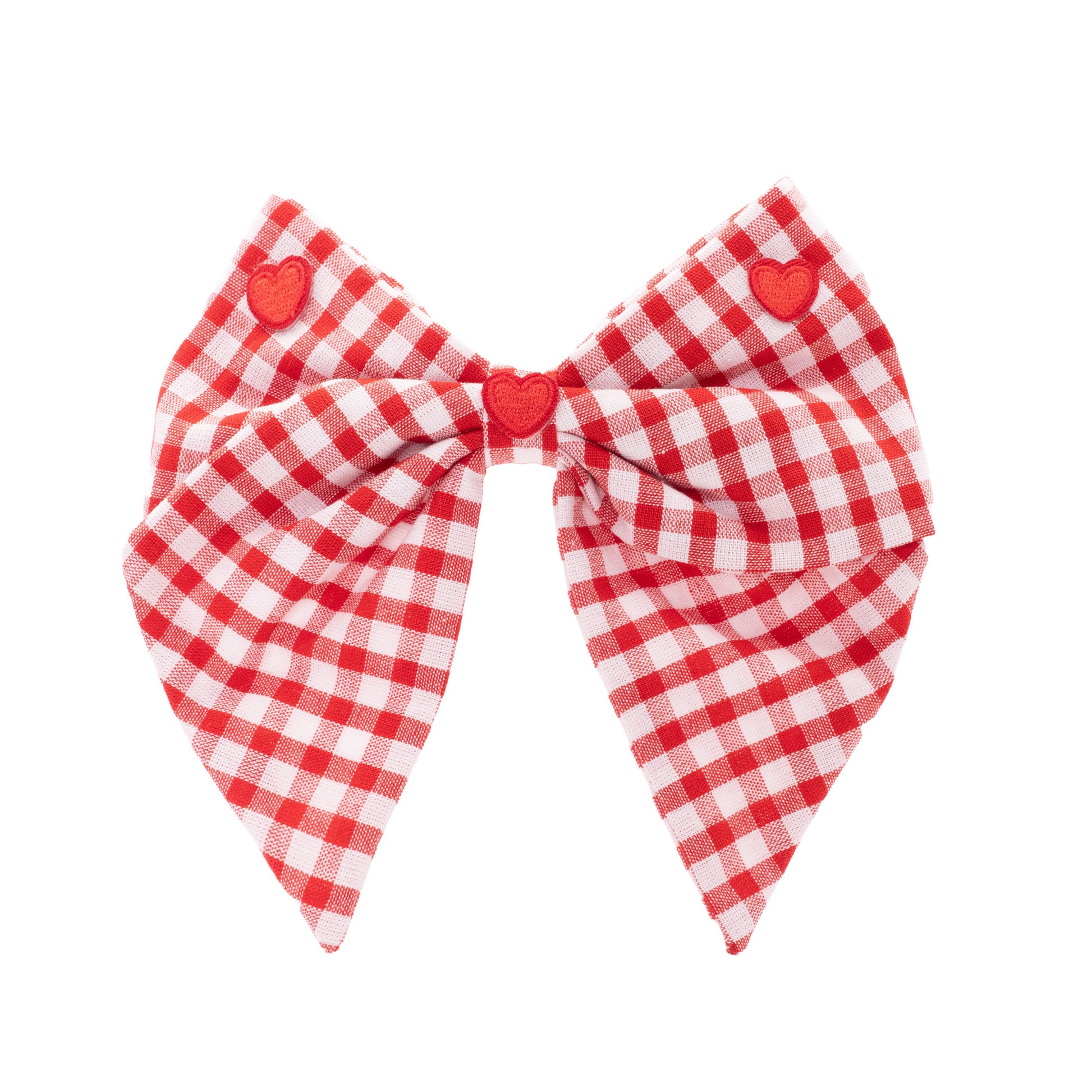 Un air de pique-nique romantique souffle sur ta tenue ! Avec son motif vichy rouge classique et ses petits cœurs brodés, ce nœud adorable apporte une touche rétro et pleine de tendresse. À porter sans modération pour un look doux comme une tartine à la confiture.